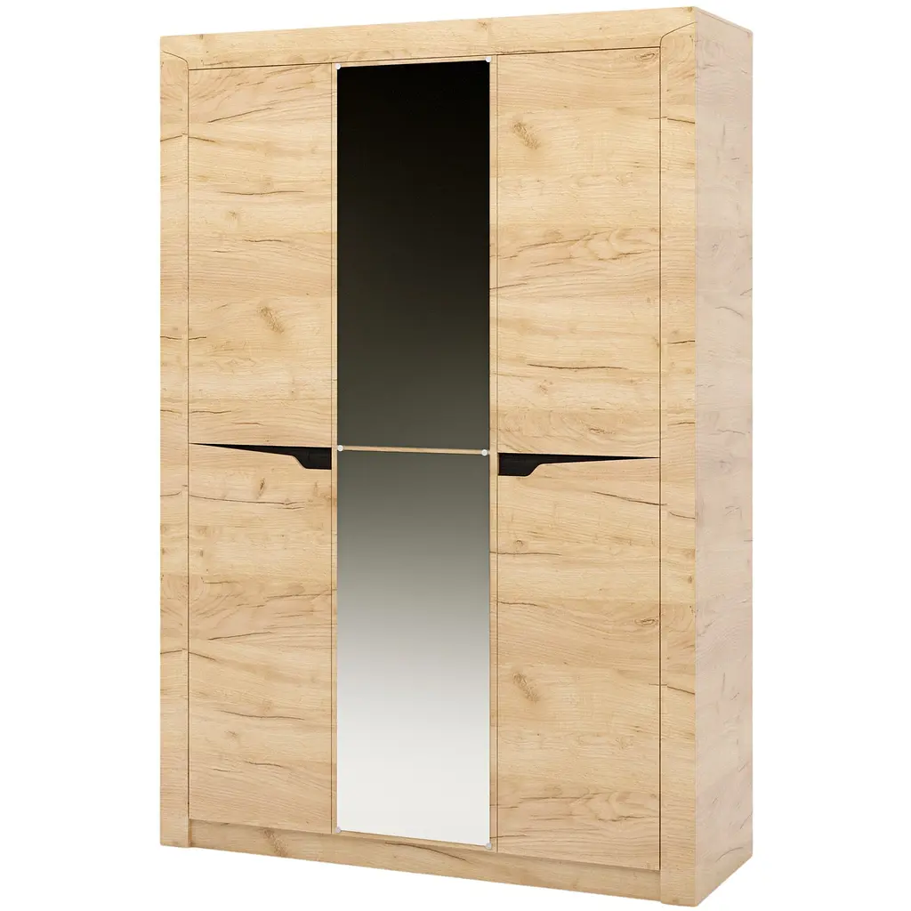 Розпашна шафа Ліберті-1420 - це практичний і місткий предмет меблів, який ідеально впишеться в будь-який інтер'єр. Є частиною модульного гарнітура колекції Ліберті від української меблевої фабрики Еверест. Надійне наповнення шафи складається з двох відділень. У першому є штанга для вішалок і полиця для різноманітних аксесуарів. Інша частина укомплектована однаковими полицями для зберігання повсякденного одягу. На фасаді виробу є дзеркало, що дасть змогу зручно переодягнутися або підібрати правильне вбрання.