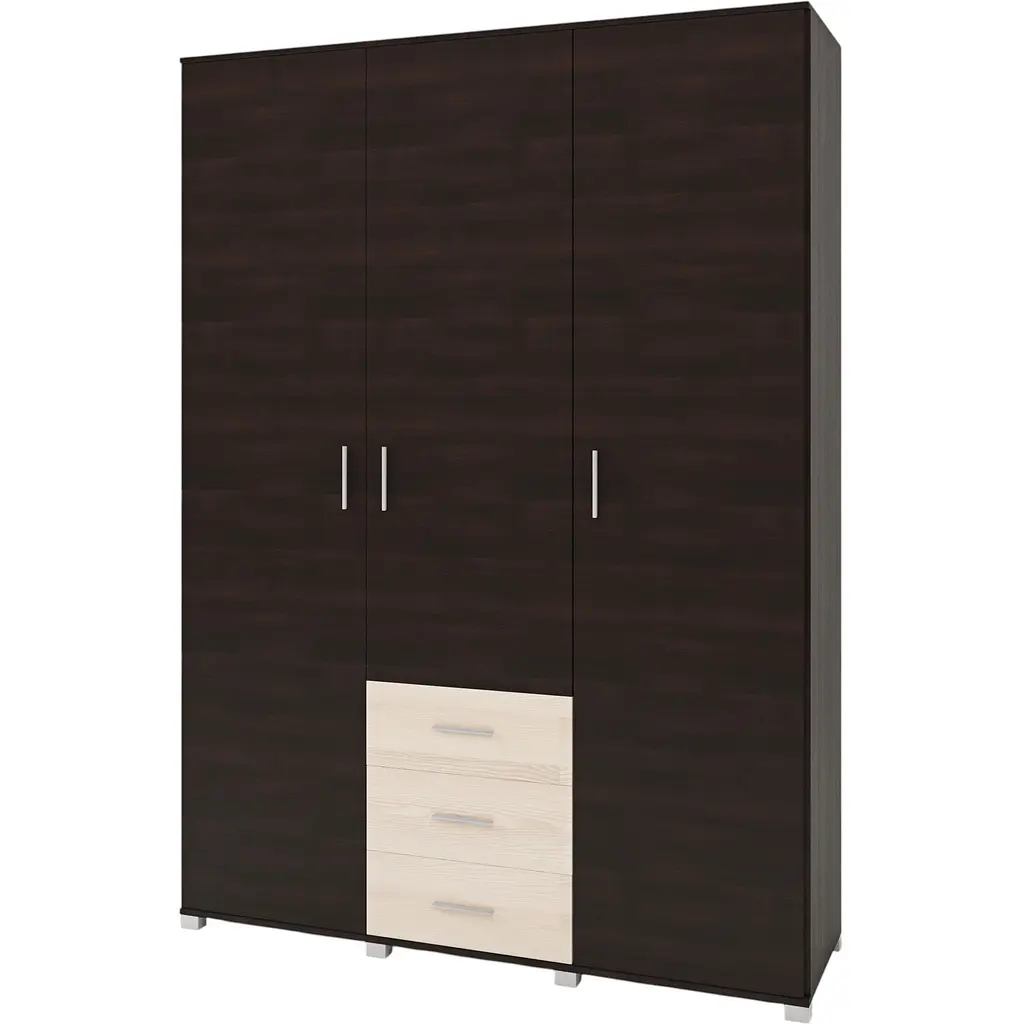 Шафа розстібна Бриз ШП-5 Венге + Дуб молочний Містка розстібна шафа Бриз ШП-5 торгової марки Еверест - стильні бюджетні меблі з колекції Бриз. Надійна конструкція поєднує високу функціональність і привабливий дизайн, складається з трьох відділів. Кожен відділ укомплектований окремими дверима. Внутрішнє наповнення бічних відділів складається з однакових штанг для вішалок та полиць. Центральний відділ вміщує чотири внутрішніх полиці і три висувних ящика. Стандартні розміри дозволяють розмістити шафу у вітальні чи спальні, при цьому не займаючи багато місця в кімнаті. Також шафу Бриз ШП-5 можна придбати із дзеркалом. Купити недорого шафу Бриз ШП-5 Еверест можна в наступних кольорах: Венге + дуб молочний Сонома + Трюфель Шафа виконана з екологічно чистого ЛДСП (рівень емісії Е1) швейцарської компанії Kronospan, тому підходить навіть для дитячої. Габарити шафи Бриз ШП-5 (Ш х Г х В) 150 х 52 х 210 см Не підійшов розмір – не проблема. Дана Серія дозволяє вибрати модель з іншими габаритами: - Шафа розстібна Бриз ШП-2 (Ш х Г х В) 60 х 38 х 210 см - Шафа пряма Бриз ШП-4 (Ш х Г х В) 100 х 52 х 210 см - Шафа розстібна 52 х 210 см ЗБІРКА І КОМПЛЕКТАЦІЯ Всі меблі поставляються в розібраному вигляді і упаковані в багатошаровий гофрований картон. Є детальна інструкція. Всі деталі просвердлені та готові до самостійного складання. Для самостійного складання Вам знадобиться: шестигранний ключ під конфірмат (4 мм) хрестова викрутка молоток Залишились питання чи хочете дешево купити шафу Бриз ШП-5 Еверест? Оформляйте замовлення через кошик або тисніть на помаранчеву кнопку чату в правому нижньому кутку екрану і наші фахівці миттєво допоможуть Вам, відповівши на всі питання!