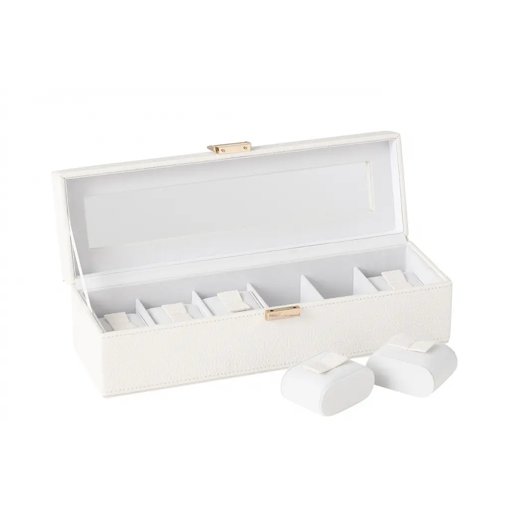 Шкатулка для зберігання годинників J-Line з еко-шкіри поєднує в собі стиль, практичність і високу якість виконання. Вона займає мінімум місця і підійде під будь-який інтер'єр. Така скринька стане прекрасним варіантом для подарунка.