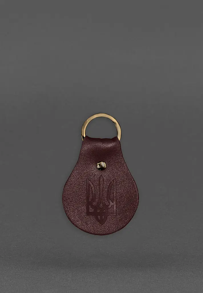 легкий та компактний – він не займає багато місця в сумці; міцний та зносостійкий; яскравий та стильний;Виготовлено брелок з високоякісної натуральної шкіри бордового кольору. Одна сторона брелока прикрашена тисненням у вигляді Тризуба.