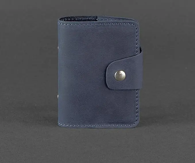 Закривається аксесуар на міцну металеву кнопку. Виготовлений з натуральної шкіри в темно-синьому кольорі.