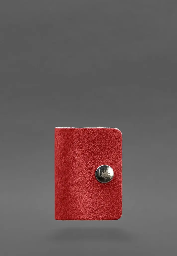 Виготовлений аксесуар з щільної натуральної шкіри в червоному кольорі. Фіксується холдер металевою кнопкою.