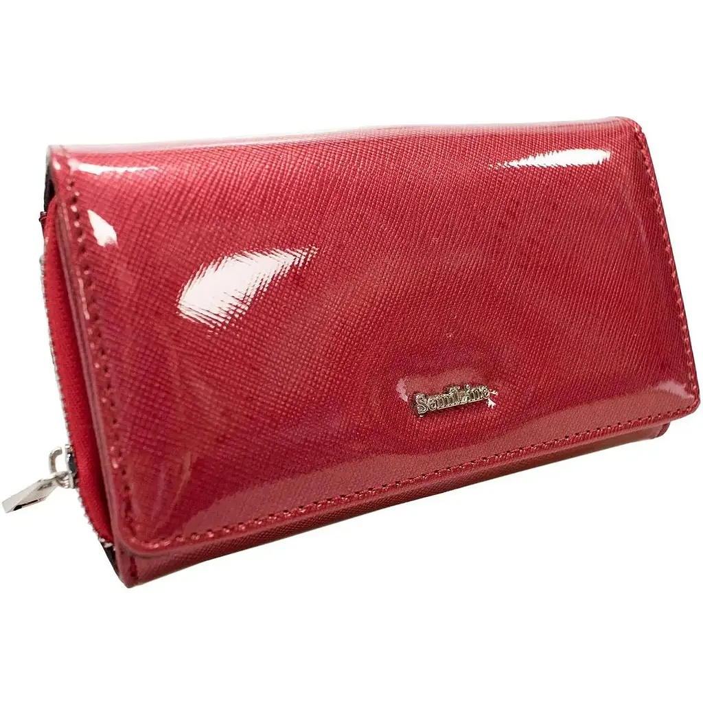 Гаманець жіночий шкіряний Semi Line RFID Red (P8237-2) - це стильна і функціональна модель із натуральної лакованої шкіри у насиченому темно-рожевому кольорі. Зовнішнє оздоблення гаманця виконане з матеріалу з елегантною текстурою Saffiano — рельєфне тиснення з перехресним візерунком не лише надає преміального вигляду, а й підвищує стійкість до подряпин, забруднень та вологи. Така фактура робить гаманець практичним у щоденному використанні та приємним на дотик. Захист RFID, продумане внутрішнє наповнення, місткість та акуратне пошиття роблять цей гаманець надійним аксесуаром для щоденного користування.