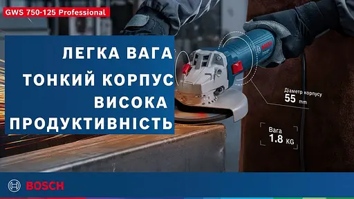 Дана кутова шліфувальна машина відрізняється двигуном нової серії 750 Вт, що забезпечує відмінну продуктивність. всього 176 мм Дуже зручно лежить у руці Відмінна ергономіка, оптимальний баланс, компактна конструкція і мала вага 1,8 кг дають можливість використовувати Кутова при роботі в місцях з неудобним доступом.
