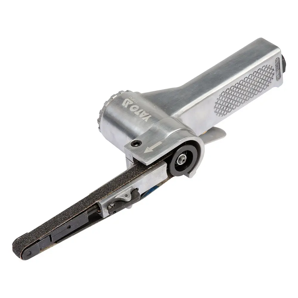 Функціональні можливості інструменту базуються на високій швидкості обертання – до 20000 об/хв, що гарантує швидке знімання матеріалу та високу якість фінішної обробки. Для стабільної роботи пристрою необхідний потік повітря 170 л/хв під рекомендованим тиском 0.6 MPa. Машина оснащена стандартним підключенням повітря 1/4" та найкраще працює зі шлангами внутрішнім діаметром 3/8" (9.5 мм). У комплект постачання вже входять три шліфувальні стрічки різної зернистості (P60, P80, P120), що дозволяє розпочати роботу відразу після підключення до пневматичної системи.