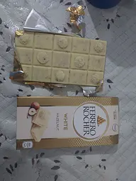 Чудова золота куля Rocher також доступна в плоскій версії. Батончик Rocher Tafel Weiss складається з прекрасного білого шоколаду та кремової начинки з какао-крему з фундуком та невеликими шматочками фундука. Спеціальна плитка для спеціальних цінителів.