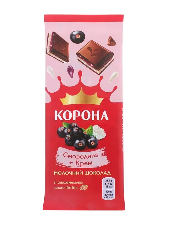 Шоколад Корона смородина з кремом допоможе швидко вгамувати голод і наповнить почуттям радості.
