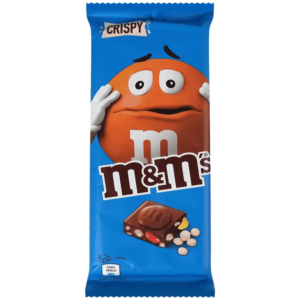 M&M's Crispy - це молочний шоколад із хрусткими рисовими кульками та веселими різноколірним драже, що створюють унікальний смак та текстуру кожному шматочку. Насолоджуйтеся ніжним шоколадом, що супроводжується приємним хрускотом, і подаруйте собі момент веселощів та насолоди.