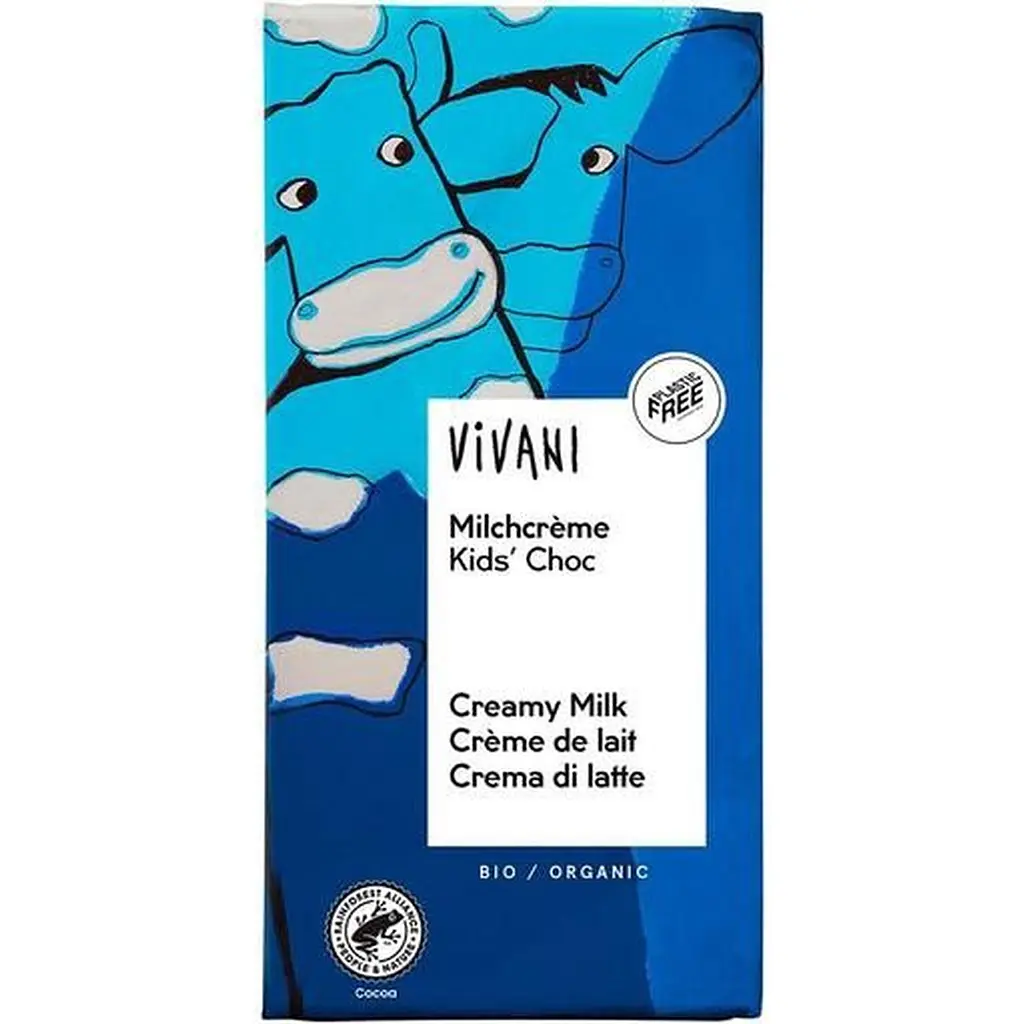 Шоколад молочний Vivani Milchcrème Kids Choc створений на основі добірних какао-бобів з додаванням ніжного молока та начинки з молочного крему - спеціально для найменших.