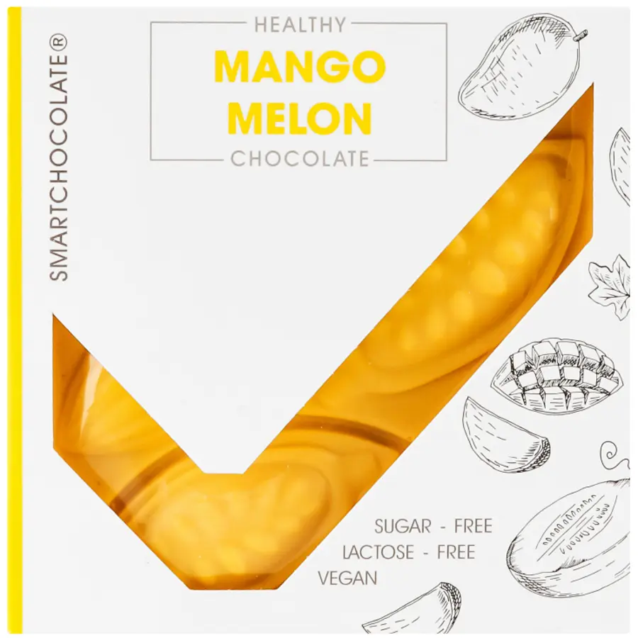 Шоколад SmartChocolate Mango&Melon - яскравий смак соковитих фруктів та якісний склад натуральних інгредієнтів. Натуральний веганський продукт без цукру.