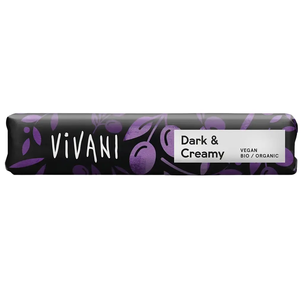 Шоколад Vivani Dark&Creamy виготовлений із домініканського какао та має надзвичайно кремову текстуру завдяки тонкому додаванню оливкової олії.