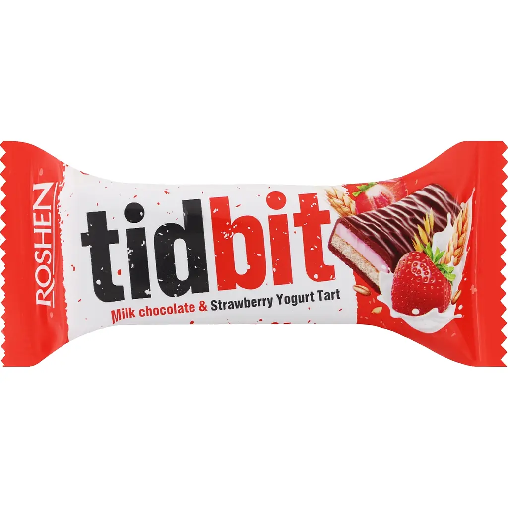 Шоколадний батончик Roshen Tidbit Milk Chocolate & Strawberry Yogurt Tart є вишуканим поєднанням нейтрального бісквіту і полуничного тарта. Батончик покритий ніжним молочним шоколадом, який тане в роті, залишаючи післясмак справжньої шоколадної насолоди. Ідеально підходить для швидкого та смачного перекушування на роботі чи навчанні, енергетичного підживлення під час активних занять чи подорожей.