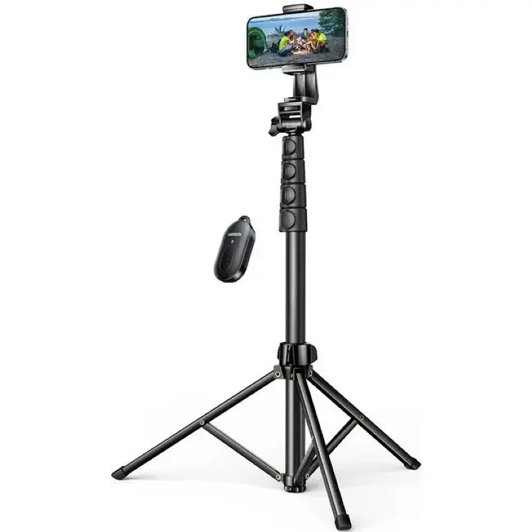 Штатив для телефона UGREEN регулюється за висотою в діапазоні від 58 до 166 см та ідеально підходить для потокового передавання в реальному часі, записування відео та фотографії.