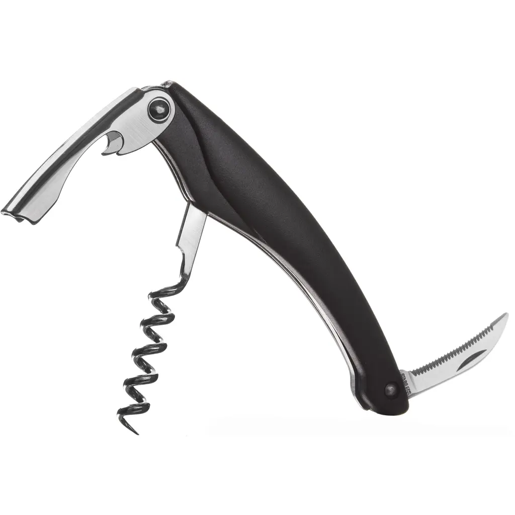 Штопор Vacu Vin Waiter's полюбляють за його компактний і легкий дизайн, його легко переносити та легко зберігати в кухонному ящику. Поєднує функції штопора для пляшок вина, відкривалки для пляшок і різака для фольги.