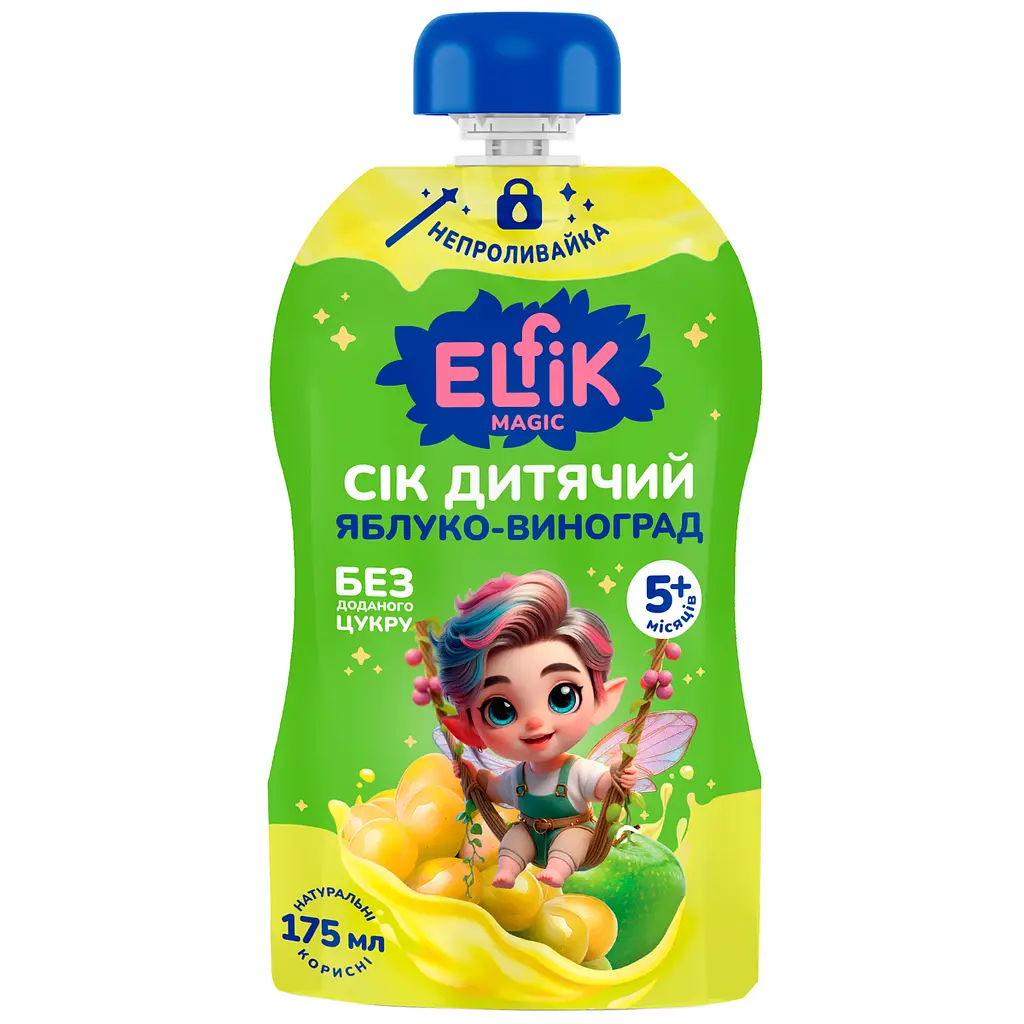 Купував цей сік для дитини, зручний формат 175 мл — якраз на один раз. Смак приємний, яблуко добре поєднується з виноградом, не надто кислий і не приторний. Сподобалось, що є упаковка з носиком — дитині легко пити самостійно, нічого не проливається.