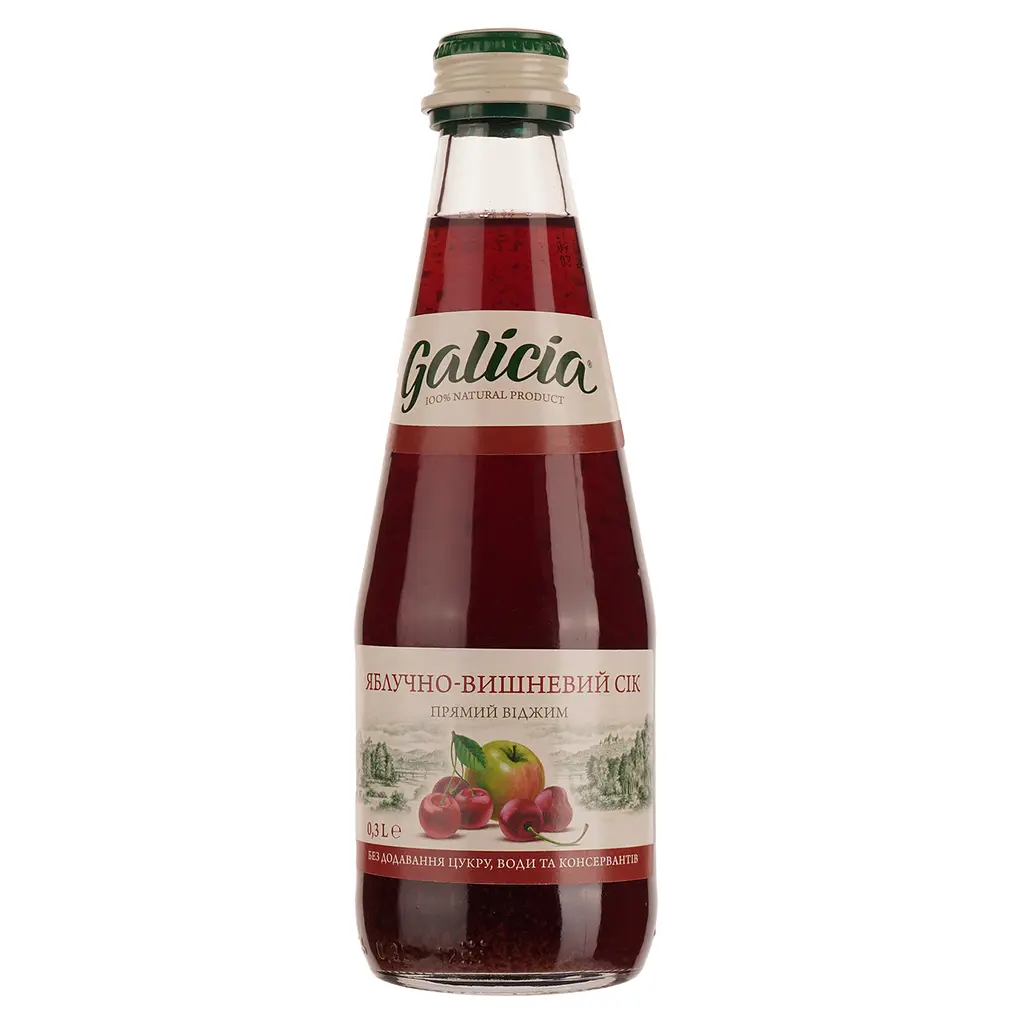 До кінця акції 3 дніСік Galicia яблучно-вишневий - солодкі яблука у поєднанні з приємною кислинкою вишень утворюють оригінальний смак, що освіжає. Цей сік - справжній еліксир молодості, адже властивості яблука, що очищають, посилюються антиоксидантною дією вишні та запобігають передчасному старінню.