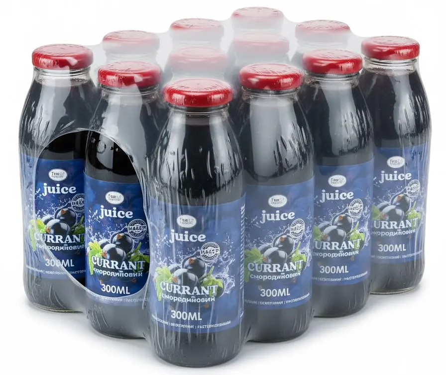 Сік відновлений Смородиновий. Склад: сік чорної смородини концентрований, вода питна, цукор, глюкозний сироп, регулятор кислотності лимонна кислота Е330, цитрат кальцію Е333, консервант: сорбат калію Е202. Харчова та енергетична цінність на 100 g (г) продукту: білки 0,045 g (г), жири 0 g (г), вуглеводи 14,3 g (г), 54,52 kcal (ккал), 228,1 kJ (кДж). Зберігати при температурі від 0°С до +25°С та відносній вологості не більше 70%. Відкриту пляшку слід зберігати в холодильнику не більше 24 годин при температурі від +2°С до +6°С. Термін придатності 12 місяців з дати виробництва.