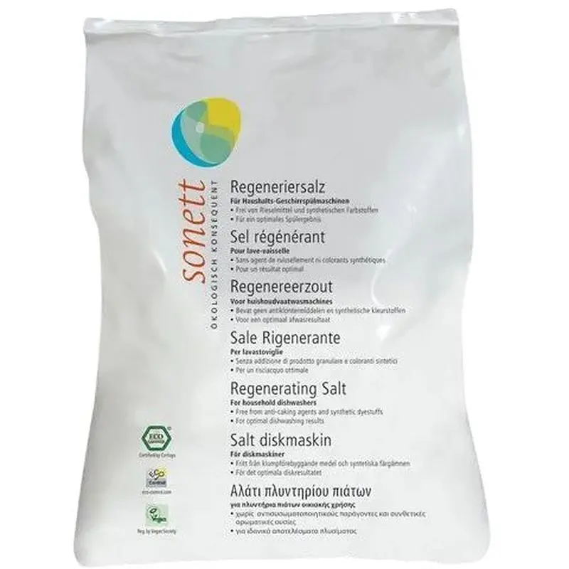 Регенерувальна сіль для посудомийних машин Sonett підходить для всіх типів посудомийних машин домашнього користування.