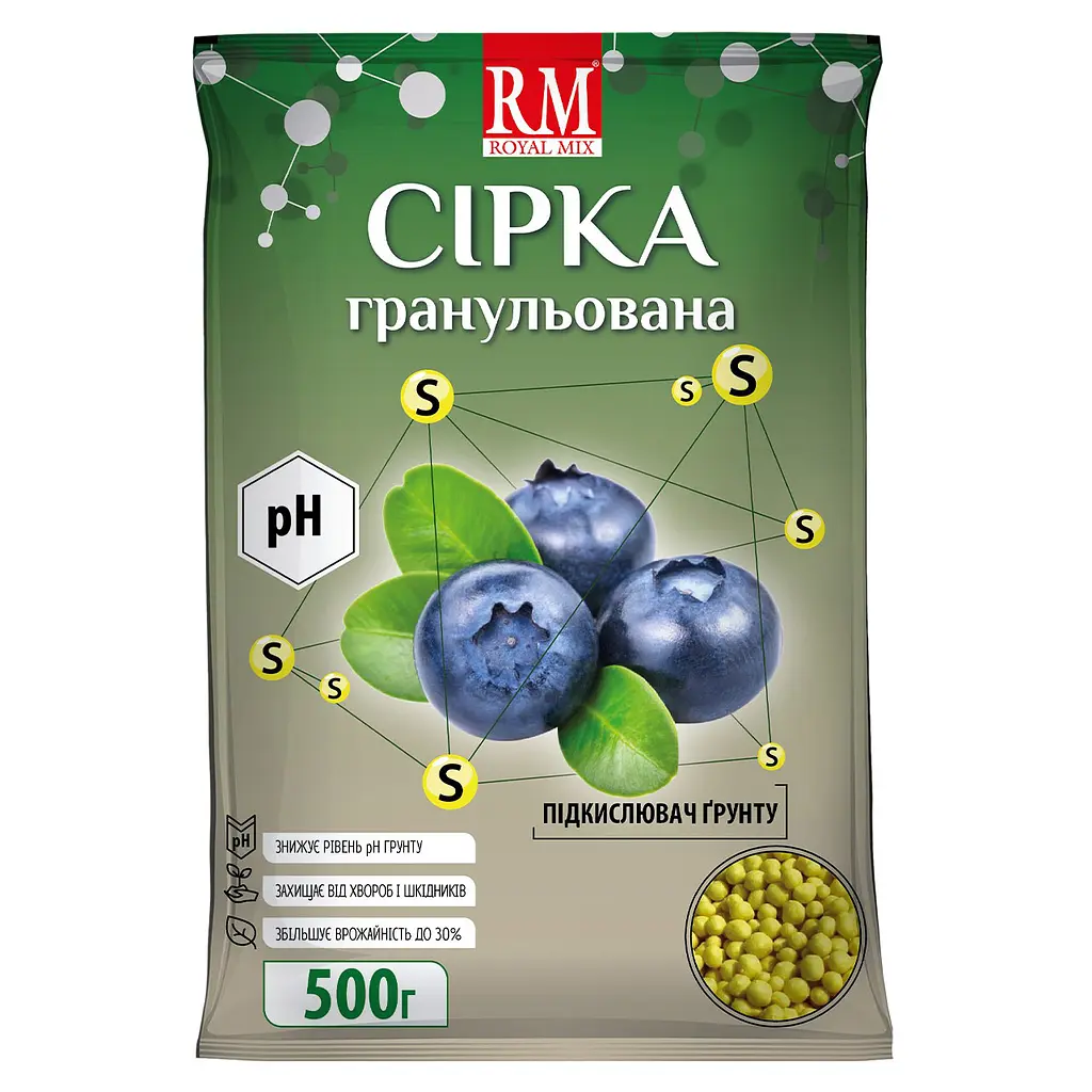 Сірка гранульована Royal Mix - це життєво необхідний рослинам хімічний елемент. Входить до складу всіх білків, міститься в деяких амінокислотах.