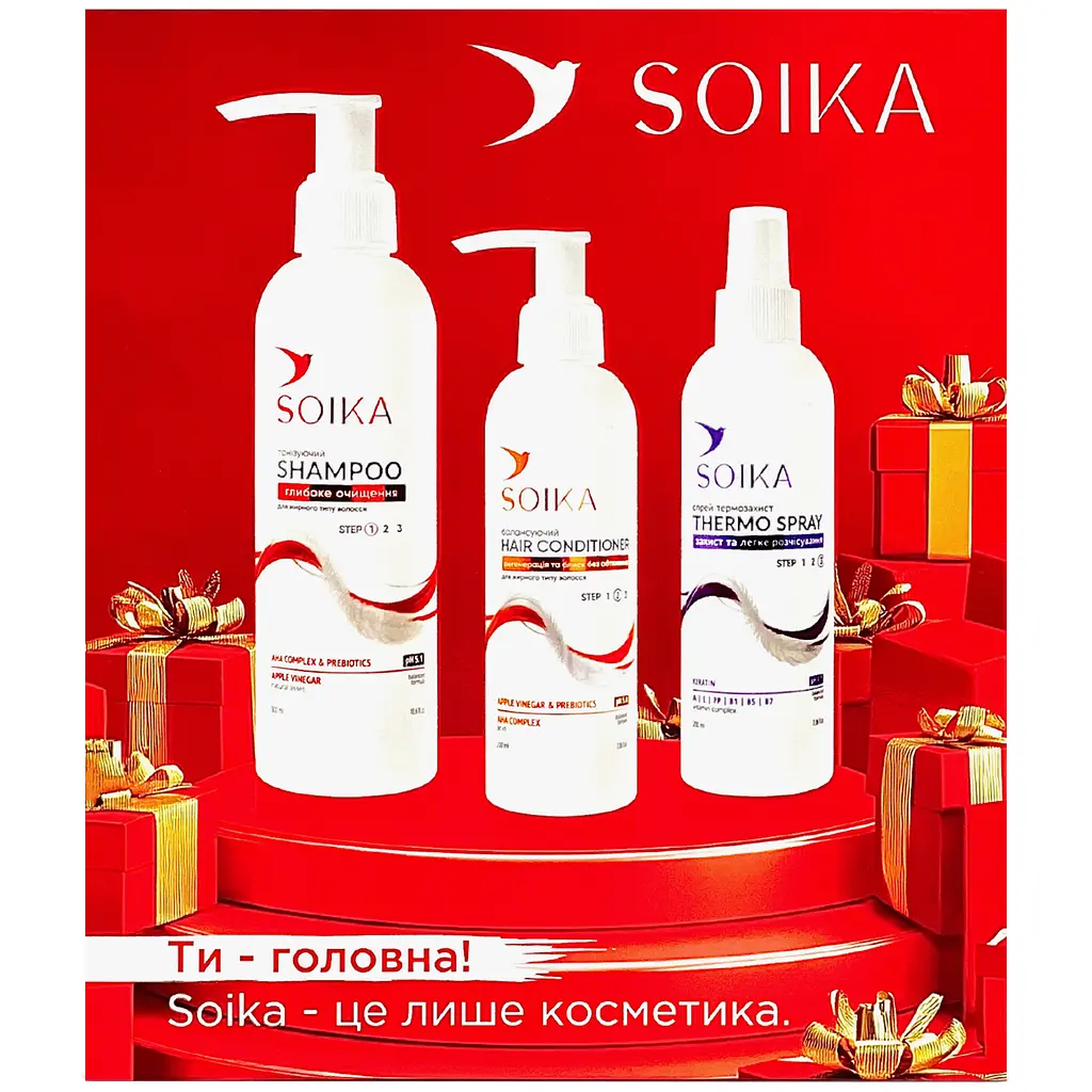 Набір для волосся Soika Глибоке очищення та захист 3 в 1 - це комплексний підхід до догляду за жирним волоссям, який поєднує ефективні засоби для очищення, живлення та захисту волосся.