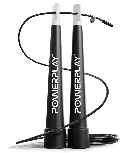 Швидкісна скакалка для кросфіту PowerPlay 4202 – це достатня ефективний тренажер, яким можна користуватись як у спортзалі, так і на вулиці чи вдома. Вона виготовлена зі сталевого дроту, обтягнутого поліпропіленом, міцна, легка, не займає багато місця. Механізм підшипника виготовлений з матеріалів високої якості. На відміну від класичної конструкції, ручки PowerPlay 4202 оснащені головками, які крутяться, з підшипниками для запобігання скручуванню шнурка під час тренування. Наявність підшипників дозволяє виконувати значно більше обертів на секунду. Застосування швидкісної скакалки забезпечує більш інтенсивне навантаження, розвиває витривалість, зміцнює серцево-судинну та дихальну систему. Також стрибки на такій скакалці ефективно тренують м'язи ікри, стегон та пресу.