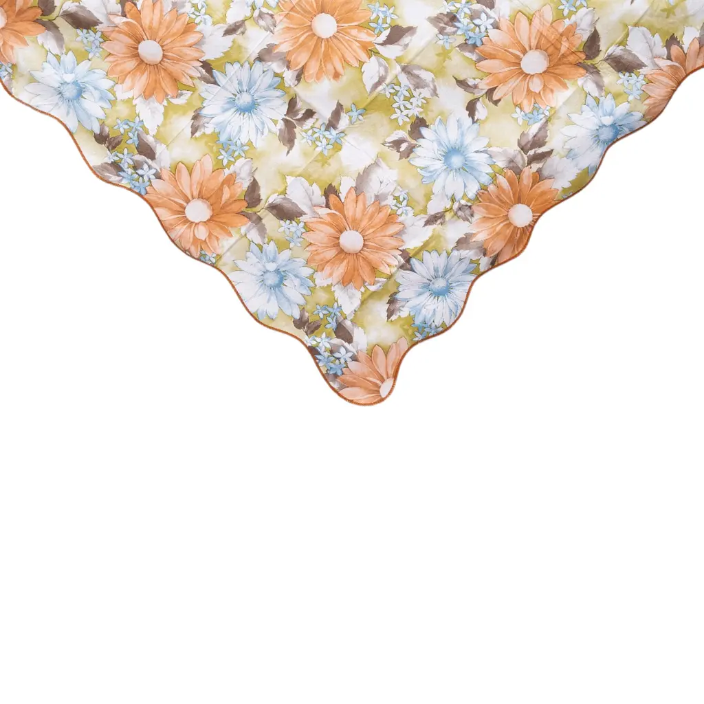Скатертина виглядає як тканинна. Навіть оброблені краї, зроблені ніби хвилею і обшиті. Є тиснення на поверхні. Але повністю водонепроникна, миється. Взагалі, враження що тканину просочили чимось типу силікону. Неочікувано гарно і практично. Гарний вигляд. Всі розміри, як зазначено.