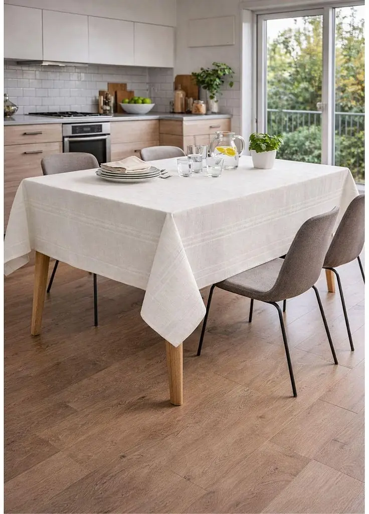 Поліестер забезпечує захист столу від забруднень, вологи та подряпин, а також значно спрощує догляд. Скатертина не мнеться, швидко сохне та не втрачає колір після прання, що робить її чудовим варіантом для щоденного використання.