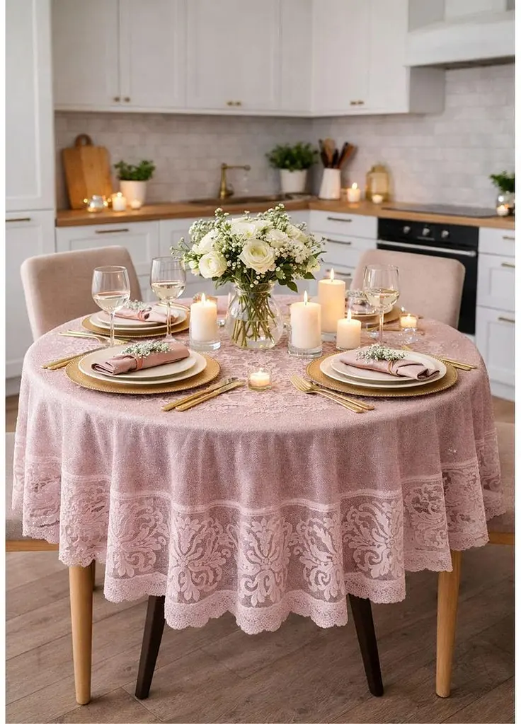 Поліестер забезпечує захист столу від забруднень, вологи та подряпин, а також значно спрощує догляд. Скатертина не мнеться, швидко сохне та не втрачає колір після прання, що робить її чудовим варіантом для щоденного використання.