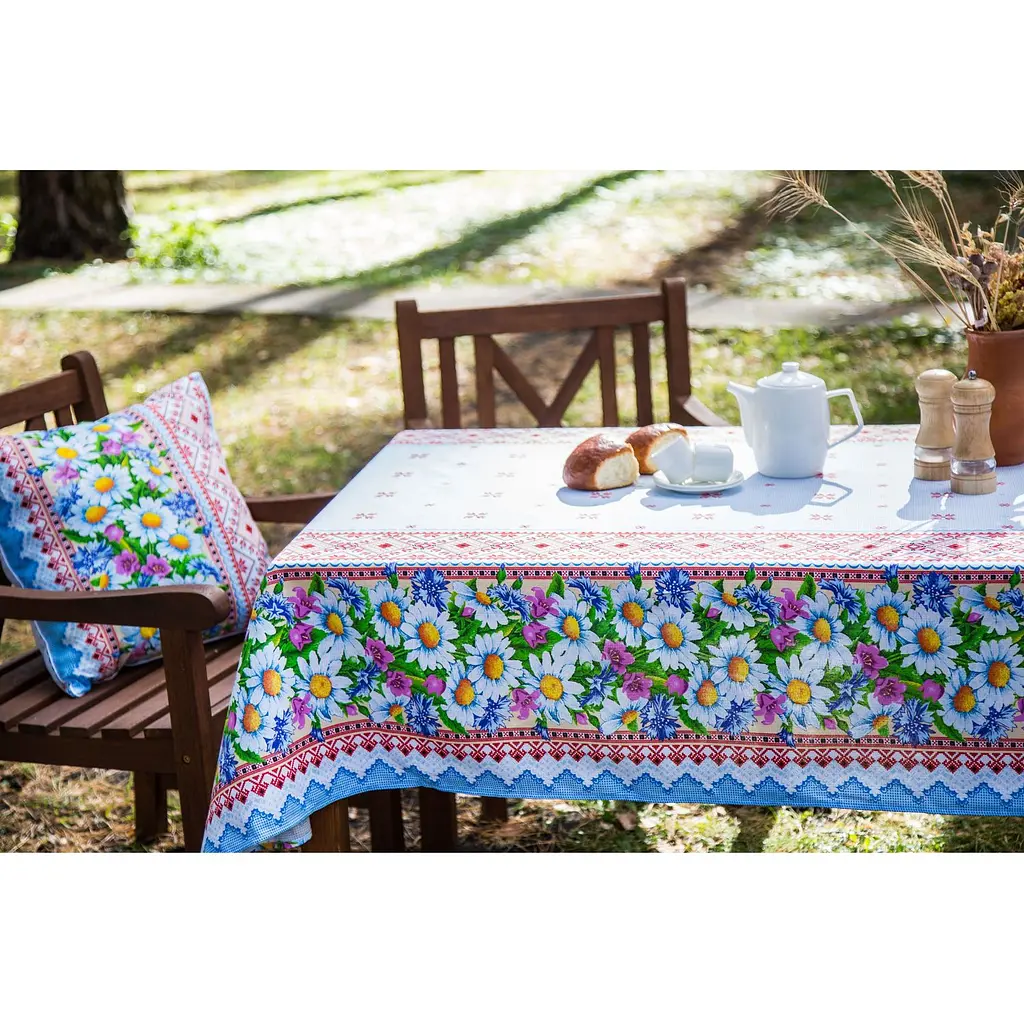Скатертина Ecotton виготовлена зі щільної 100% бавовняної тканини полотняне плетіння, нитки щільні типу рогожка.