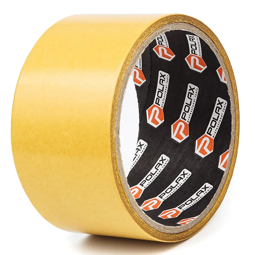 Скотч двосторонній Polax на поліпропіленовій основі використовується для основного або допоміжного кріплення покриттів для підлоги, декоративних панелей, не важких вертикальних і навісних конструкцій. Двосторонній скотч суттєво спрощує процес виробництва у багатьох сферах діяльності: провадженні корпусних меблів, поліграфічній промисловості, рекламній справі. Застосування двостороннього скотчу дозволяє простим та швидким способом отримати досить міцне та надійне кріплення елементів на тривалий чи короткий термін. Тому найчастіше він застосовується для приклеювання підлогових покриттів, проклеювання стиків лінолеуму, укладання ковроліну та килимових доріжок на сходах. Таким чином, матеріал добре фіксується, але може бути легко демонтований у будь-який необхідний час. Стрічка легко забирається з поверхні підлоги після демонтажу, практично не залишає слідів та не деформує основу. Скотч двосторонній Polax 50 мм х 5 м (101-001)