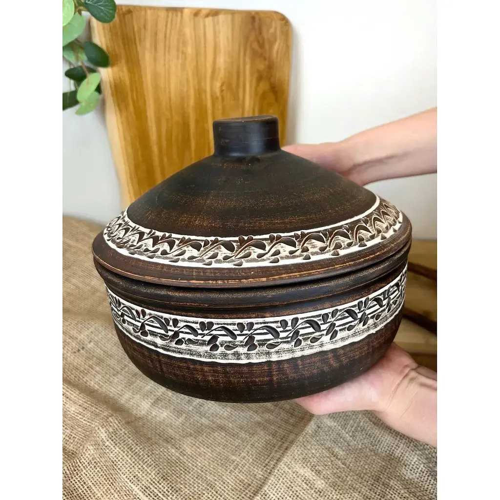 Ця сковорода створена для повільного томління і збереження натурального аромату страв. Ідеально підходить для запікання, тушкування і приготування традиційних страв української кухні. Завдяки глиняній структурі тепло розподіляється рівномірно, роблячи страви особливо ніжними та соковитими.