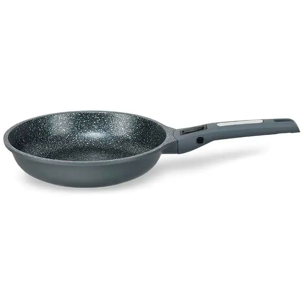 Сковорода Maestro MR1208-24 діаметром 24 см зі знімною ручкою та двошаровим антипригарним покриттям Granite має тривалий термін експлуатації та рівномірно розподіляє тепло при нагріванні. Підходить для всіх джерел тепла, включаючи індукцію.