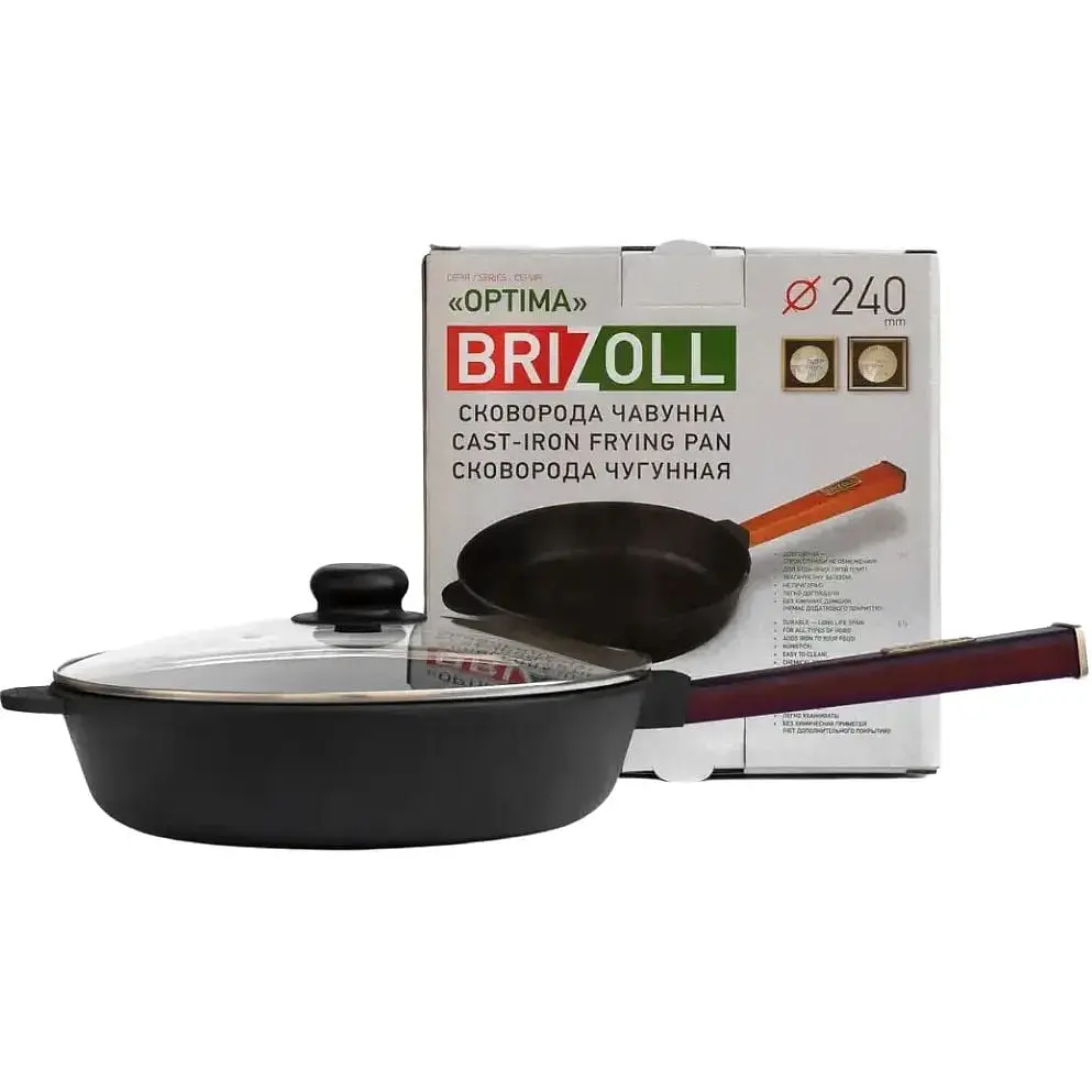 Сковорода Brizoll Optima-Bordo з кришкою чавунна 24х6 см (O2460-P2-C)
