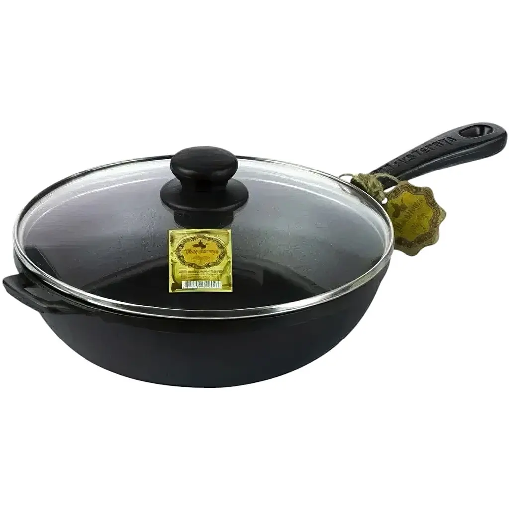 Сковорода чавунна лита Maysternya зі скляною кришкою допоможе легко приготувати необхідні страви. Це не тільки сплав заліза, кремнію та вуглецю, а також знання та багаторічний досвід майстрів. ТМ "Maysternya" відмовилася від машинного виробництва. У кожен виріб вкладено ручну працю та піклування про майбутнього власника.