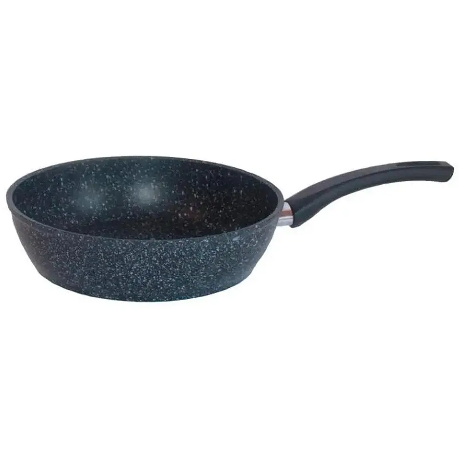 Сковорода антипригарна Biol – 240мм Black Stone глибока. Глибока сковорода ідеально підійде як для смаження простої яєчні, так і для гасіння Ваших улюблених страв. Значна товщина дна та стінок (3.6мм) перешкоджає деформації корпусу сковороди, та гарантує її довговічність. Полімерне антипригарне покриття нового покоління має високу зносостійкість, а також є абсолютно безпечним для здоров'я людини. Завдяки антипригарному покриттю їжа не пригорає навіть якщо Ви готуєте з мінімальною кількістю олії або зовсім без неї. Бакелітова ручка не нагрівається та має ергономічну форму. Сковороди з таким колірним рішенням виглядатимуть стильно на будь-якій кухні.
