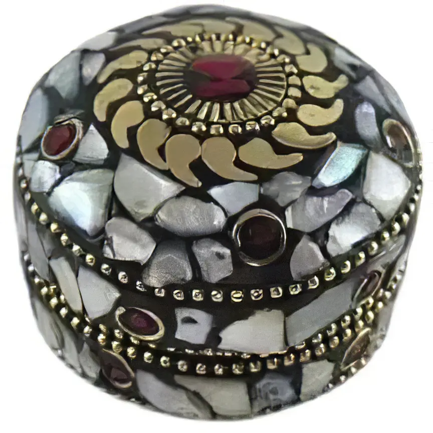 Скринька металева з перламутром та коралами - це невелика та витончена скринька, прикрашена натуральним перламутром та коралами. Вона виготовлена із міцного металу, який надає їй міцності та довговічності. Прикраси з натуральним перламутром та коралами додають скриньці розкоші та елегантності. Перламутр та корали відомі своєю привабливою красою та символікою, їх використання в прикрасах надає особливого шарму та привабливості цій скриньці. Металева скринька з перламутром та коралами є не тільки стильним аксесуаром, але й функціональним предметом.