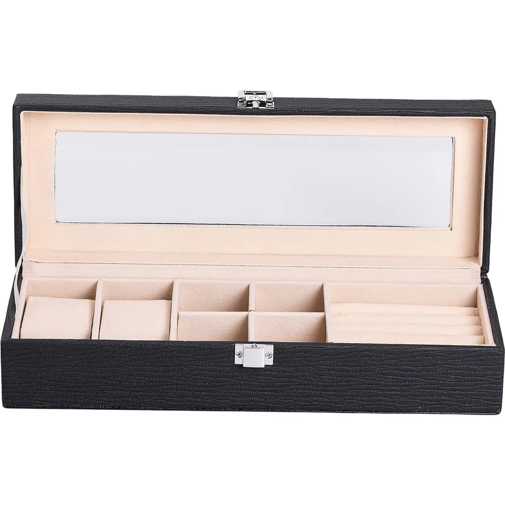 Скринька-органайзер для прикрас Yiwu розміром 31x11x8 см - компактне рішення для зберігання різноманітних аксесуарів. Скринька має 7 відсіків, завдяки чому можна зручно розмістити каблучки, браслети, сережки та годинники. Внутрішнє оздоблення виконане з велюру і відмінно підходить для перлів, каміння, дорогоцінних металів та біжутерії.