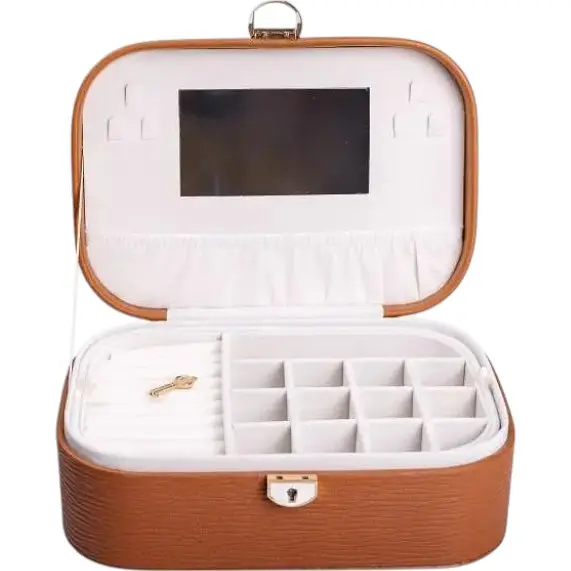 Органайзер доповнений дзеркалом у кришці, що робить його використання ще зручнішим. Скринька щільно закривається, замочок має обмежувальне кільце і додатково замикається на ключ.