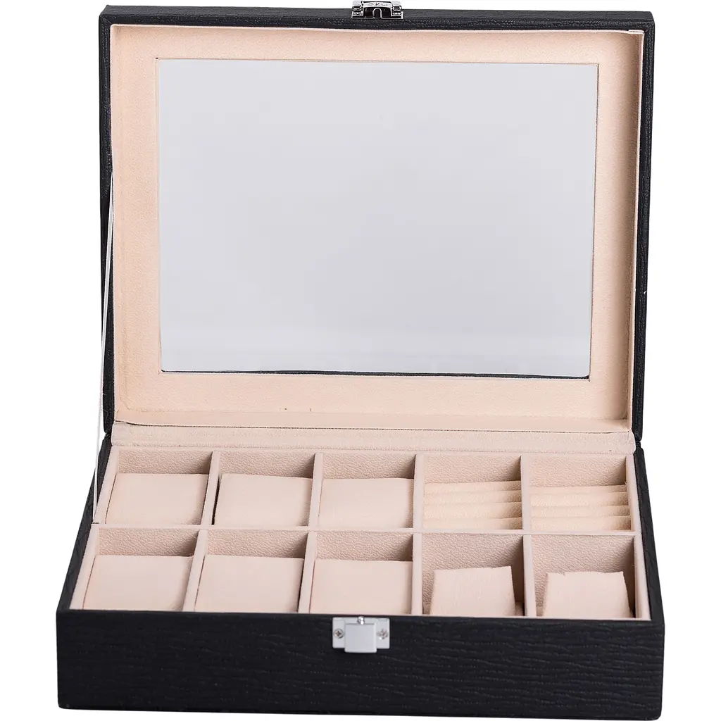 Скринька-органайзер Yiwu для прикрас та аксесуарів розміром 25.5x20x7.5 см - практичне рішення для зберігання наручних годинників, каблучок, браслетів та ланцюжків. Органайзер має 10 відсіків з велюровим оздобленням, завдяки чому можна організувати прикраси з різних дорогоцінних металів, біжутерію, годинник у задуманому власником порядку. Внутрішнє оздоблення відмінно підходить для перлів, каменів та різних синтетичних матеріалів, які використовуються як вставки для аксесуарів.