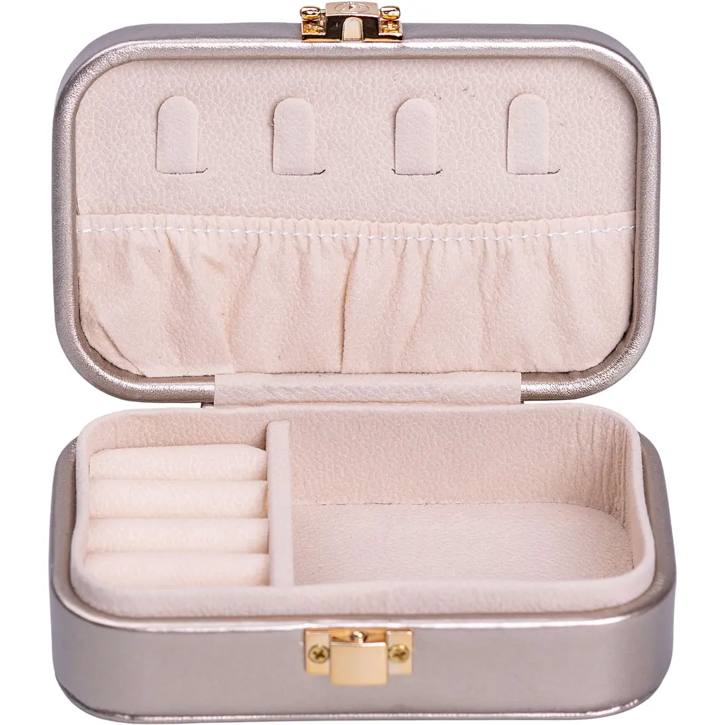 Скринька-органайзер для прикрас Yiwu розміром 12x7.5x4 см - універсальний варіант для зберігання різноманітних аксесуарів. Скринька має 2 відсіки, завдяки чому можна зручно розмістити каблучки, сережки, ланцюжки, браслети. Внутрішнє оздоблення виконане з велюру і відмінно підходить для перлів, каміння, дорогоцінних металів та біжутерії.