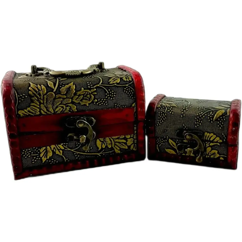 Відкрийте для себе вишуканий набір із двох скриньок у класичному стилі, який стане прикрасою вашого інтер'єру та чудовим місцем для зберігання цінних дрібниць. Ці скриньки, виготовлені в Китаї, поєднують у собі вінтажну естетику та функціональність, підійдуть для зберігання прикрас, пам'ятних речей або невеликих аксесуарів. Ці скриньки виконані з дерева з вишуканим металевим декором, що надає виробам особливої елегантності. Вони оснащені надійними застібками, завдяки чому їх вміст завжди буде у безпеці.