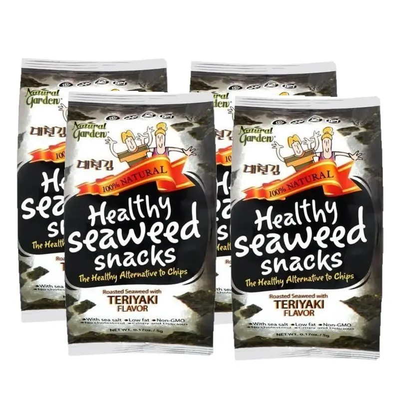 Кожен лист снеків тонко просочений соусом теріякі, створюючи не лише насичений смак, а й неймовірне смакове задоволення. Natural Garden норі зі смаком теріякі ідеально підходять як легкий перекус, який можна взяти з собою в офіс або школу, а також відмінно доповнить вашу тарілку із суші або іншими улюбленими азіатськими стравами. Здорові та повні смаку, ці снеки - відмінний спосіб додати до свого раціону вітаміни та мінерали, насолоджуючись при цьому витонченим та екзотичним смаком.