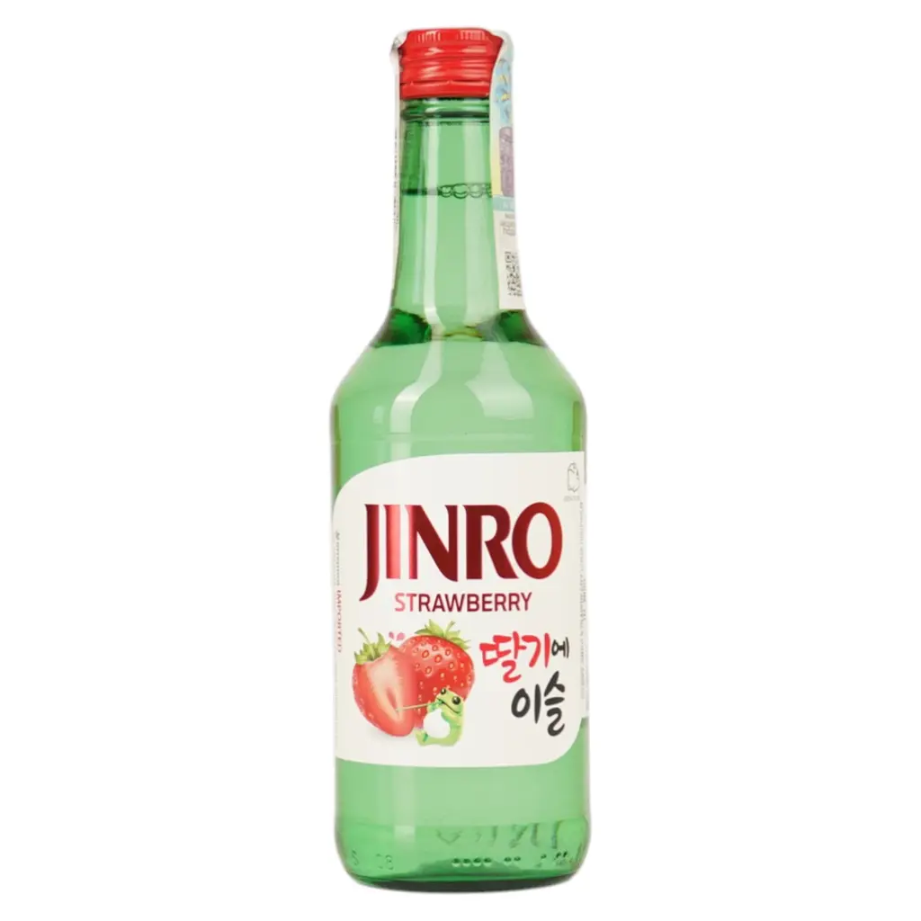 Соджу Jinro Strawberry – це фруктова соджу з ароматом полуниці, що має м’який, освіжаючий смак та розкривається солодкими нотами стиглої полуниці, з легкою кислинкою та чистим, фруктовим посмаком. Напій поєднує очищену воду, нейтральний спирт, сироп з високим вмістом фруктози, натуральний ароматизатор полуниці, концентрований сік полуниці, а також регулятори кислотності (E330, E270) для ідеального балансу солодкості та свіжості.