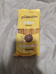 Соломка тонка, хрустка та добре підсмажена, із ніжною солодкою скоринкою, яка не перебиває загальний смак, а лише робить його приємно солодким. Вона гарно хрумтить, але не розсипається на крихти від першого ж укусу, що додає задоволення під час їжі. Смак підійде тим, хто любить класичні солодкі снеки без зайвих надмірностей. До чаю та кави - ідеально.