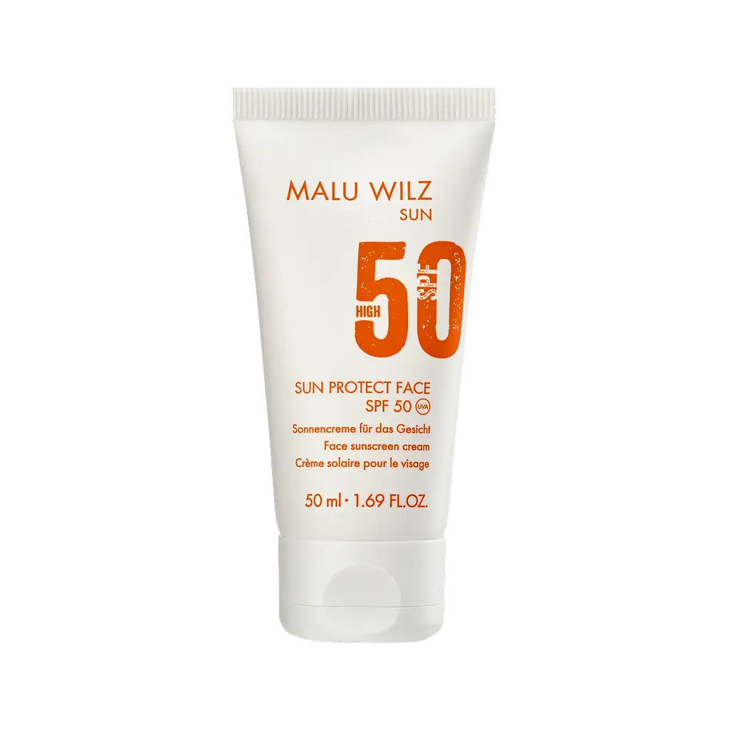 Сонцезахисний крем для обличчя Malu Wilz Sun Protect Face SPF 50 - це продукт, який надає надійний захист від сонця та зволоження для вашої шкіри. Цей крем швидко вбирається, містить гіалуронову кислоту для зволоження та є особливо легким для швидкого поглинання шкірою. SPF 50 захищає від шкідливих UVA та UVB променів.