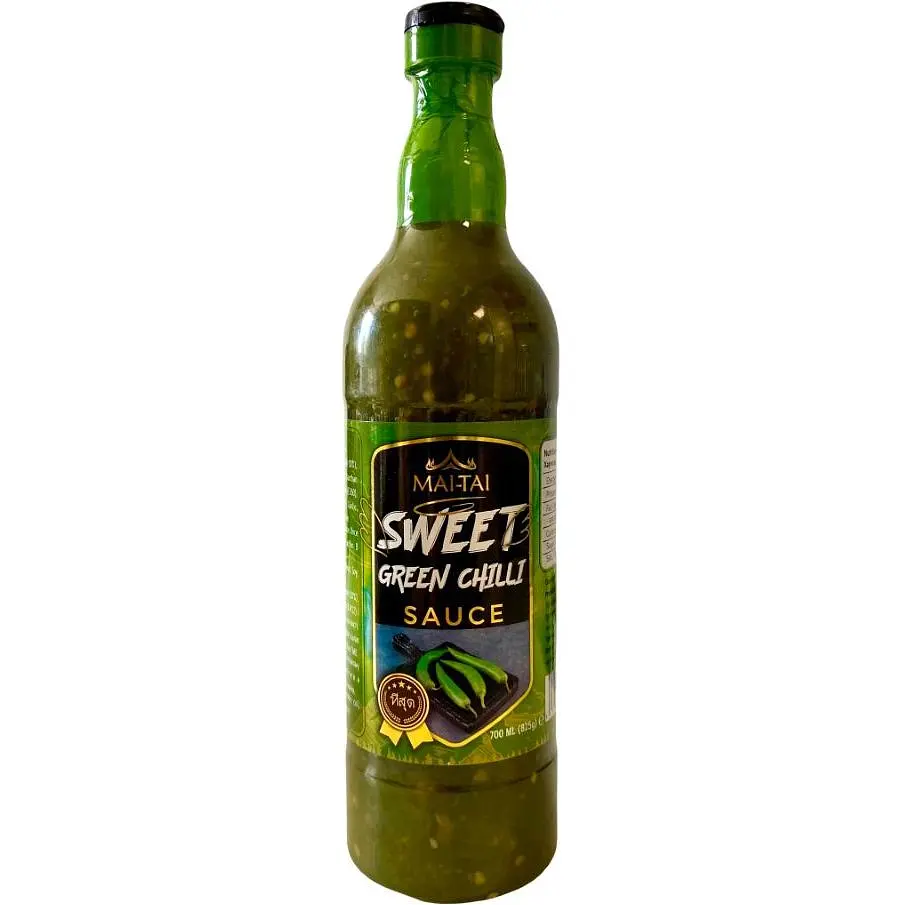 Це солодко-пряний зелений чилі-соус із яскравим, пікантним смаком та легкою кислинкою. Виготовлений на основі зеленого перцю чилі з додаванням цукру, оцту та спецій, цей соус чудово доповнить азійські страви, гриль, курку, морепродукти та роли.