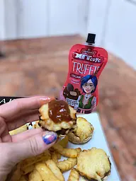 Дуже вдале поєднання! Соус Truffle має насичений грибний аромат і дуже ніжну консистенцію. Він не надто гострий і не занадто солоний — усе в міру. Прекрасно доповнює страви з картоплі та білого м'яса.