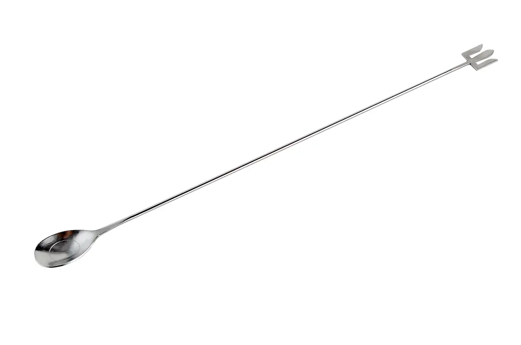 Ця пряма ложка довжиною 40 см виготовлена з харчової нержавіючої сталі і створена для професійного використання за баром. Лаконічна форма без спіралі забезпечує максимальну точність при перемішуванні коктейлів у склянках будь-якого розміру, дозволяючи бармену тримати повний контроль над процесом.