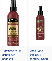 Термозахисний спрей для волосся TRESemme Keratin Smooth захищає та розгладжує волосся.