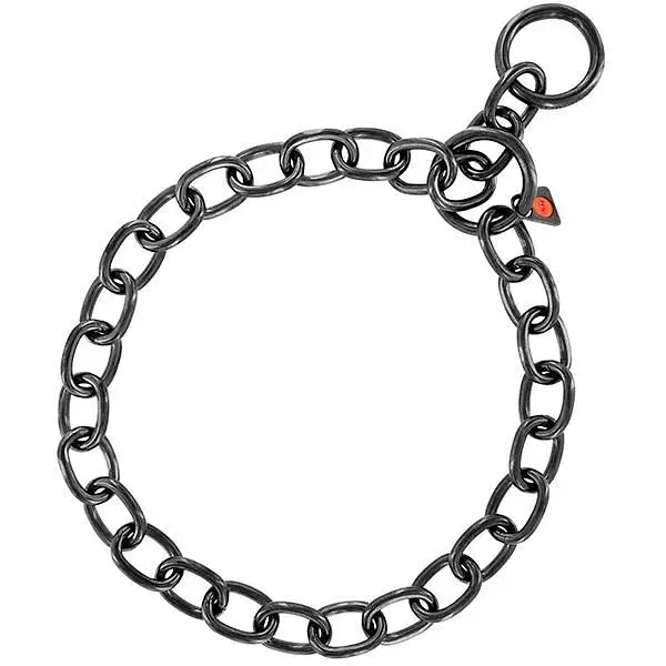 Sprenger Extra Strong Medium Link - особливо міцний ривковий нашийник-ланцюг для собак вагою до 110 кг. Рекомендується як для щоденних прогулянок, так і для виставок. Ефективний у навчанні цуценят і дорослих собак, які тягнуть на прогулянці. Нашийник Спренгер повністю виготовлений з вороненої нержавіючої сталі. Являє собою ланцюг з довгастих плоских ланок з 2-ма круглими кільцями на кінцях. Всі деталі зварні, нероз'ємні.Ланцюг працює як тренувальний ривковий нашийник, коли повідець прикріплений до вільного кільця: при ривку нашийник починає затягуватися, даючи зрозуміти собаці про небажану поведінку. Якщо прикріпити повідець до закріпленого кільця, то нашийник буде працювати як звичайний прогулянковий.Кожна собака гідна носити нашийник Sprenger! ВАЖЛИВО! Нержавіюча сталь містить хром і нікель, тому амуніція з нержавіючої сталі не підходить для собак, у яких є алергія на нікель. Для таких вихованців рекомендується амуніція з гіпоалергенного сплаву куроган, де нікель у складі відсутній.Також слід враховувати, що чорний колір вороненої сталі може стиратися під час експлуатації, надаючи виробу античного вигляду. У процесі виготовлення залишки гальванічного фарбування ланцюга очищаються, проте їх невелика частка все ж може потрапити на шерсть. Тому амуніцію з вороненої сталі не рекомендується використовувати для собак з білою та світлою шерстю. Чому варто купити нашийник-ланцюг для собак Sprenger Extra Strong Medium Link: міцний, надійний і зручний в експлуатації; виняткова міцність на розрив - 440 кПа; швидко надягається через голову вихованця; дозволяє власнику повністю і без зусиль контролювати рух собаки на прогулянці при ривку;підходить для виставок і повсякденного вигулу; виготовлений з нержавіючої сталі преміум-якості, стійкої до іржі та корозії, умов екстремальної вологості, морської води та поверхневих механічних пошкоджень (порізи, подряпини); відсутність запаху; максимальна вага вихованця - 110 кг;виготовлений зі сталевого вороненого дроту калібру 4 мм; тип ланцюга - середня плоска ланка 2,6х1,8 см; 2 круглі кільця - 35х5 мм;рекомендується для собак усіх порід з короткою або середньою довжиною шерсті;німецька якість: виготовлений у Німеччині провідним у світі виробником високоякісних товарів для собак.